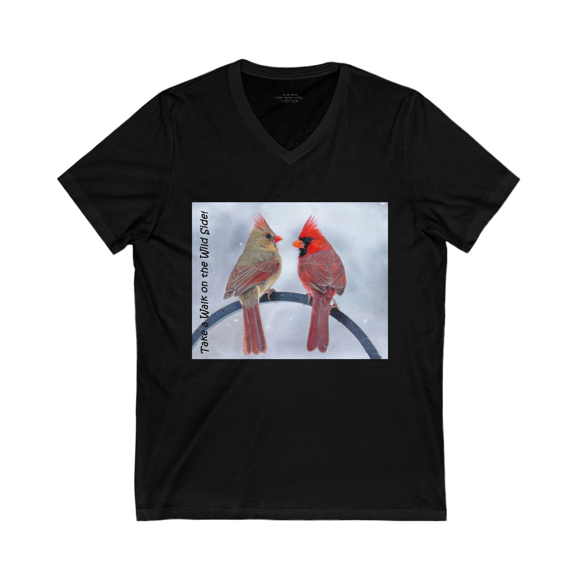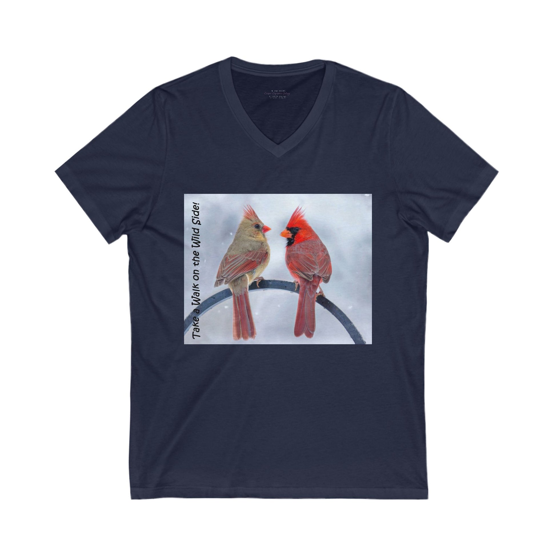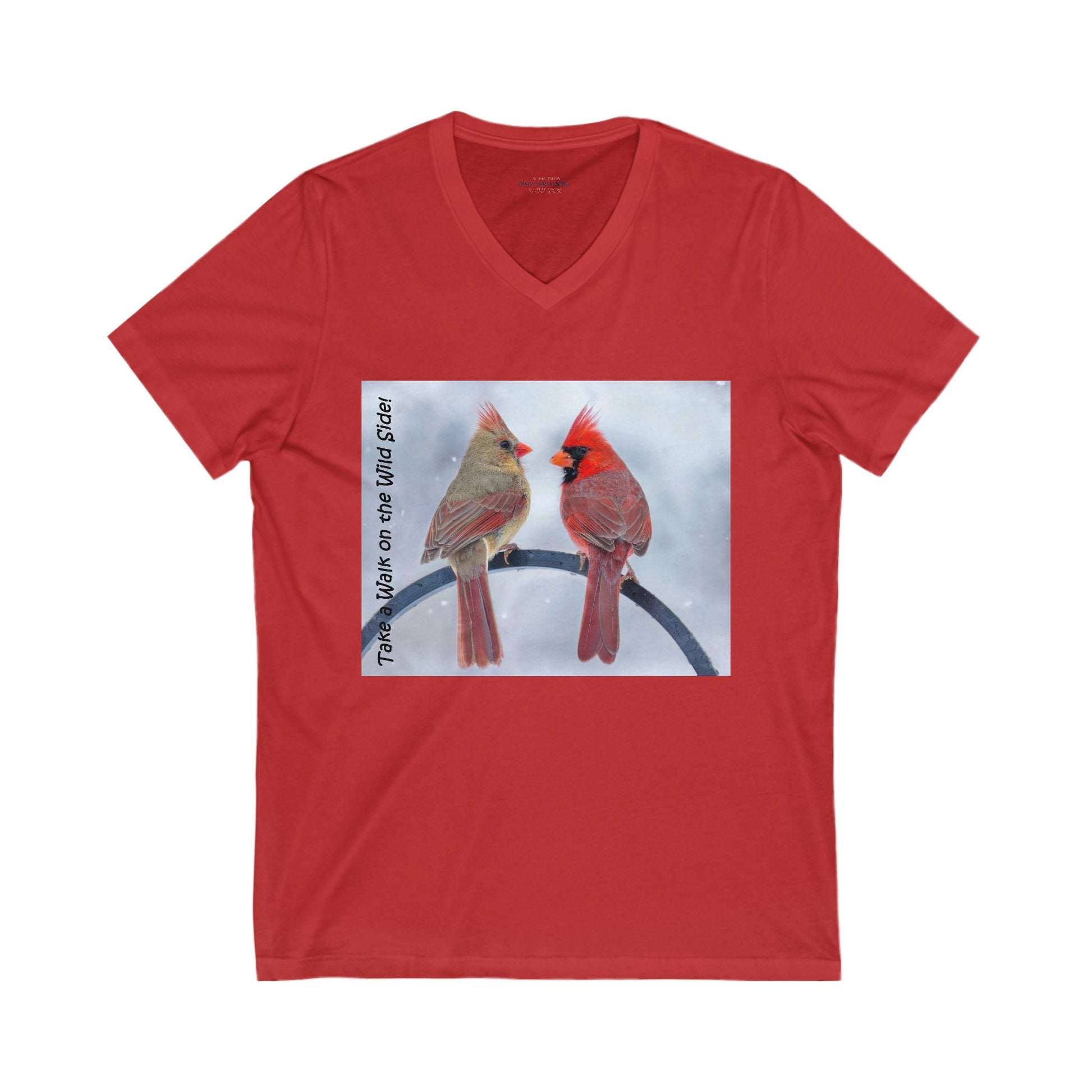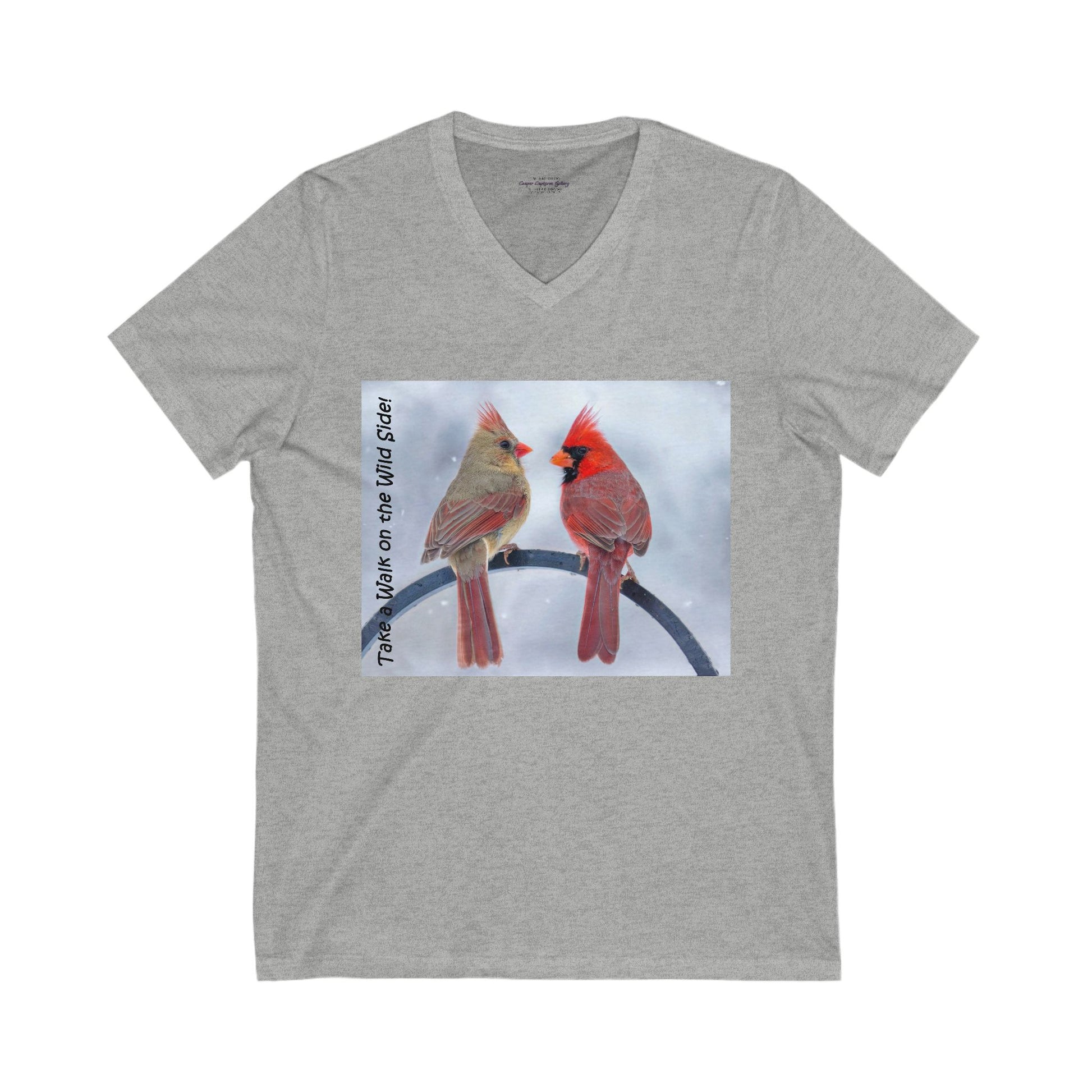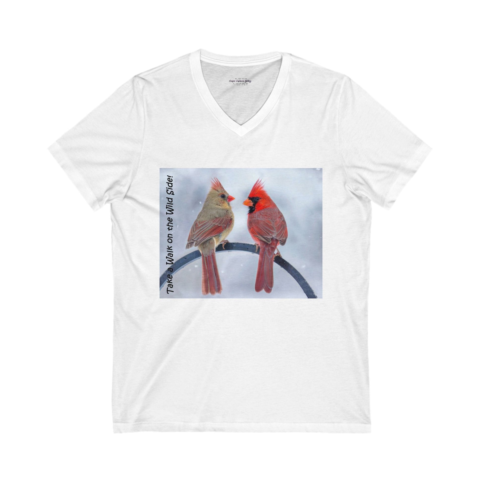 Cardinal Pair's "Snowy Chat" - V-Neck Tee-Shirt
