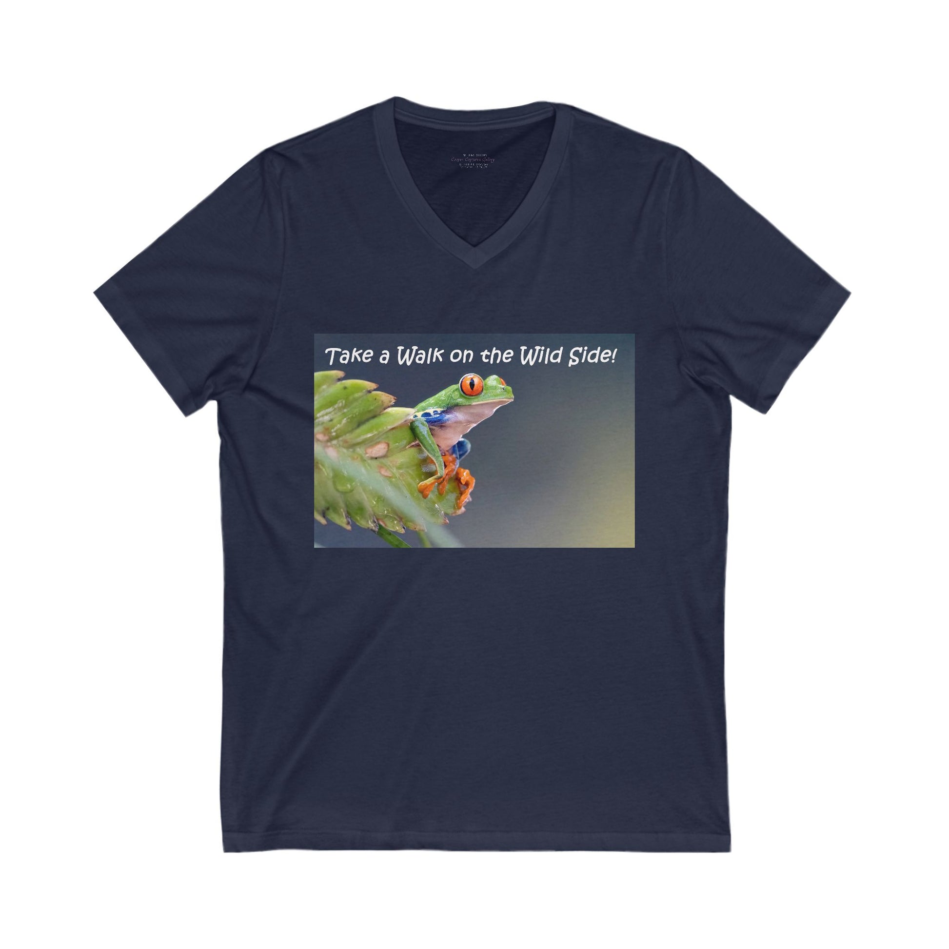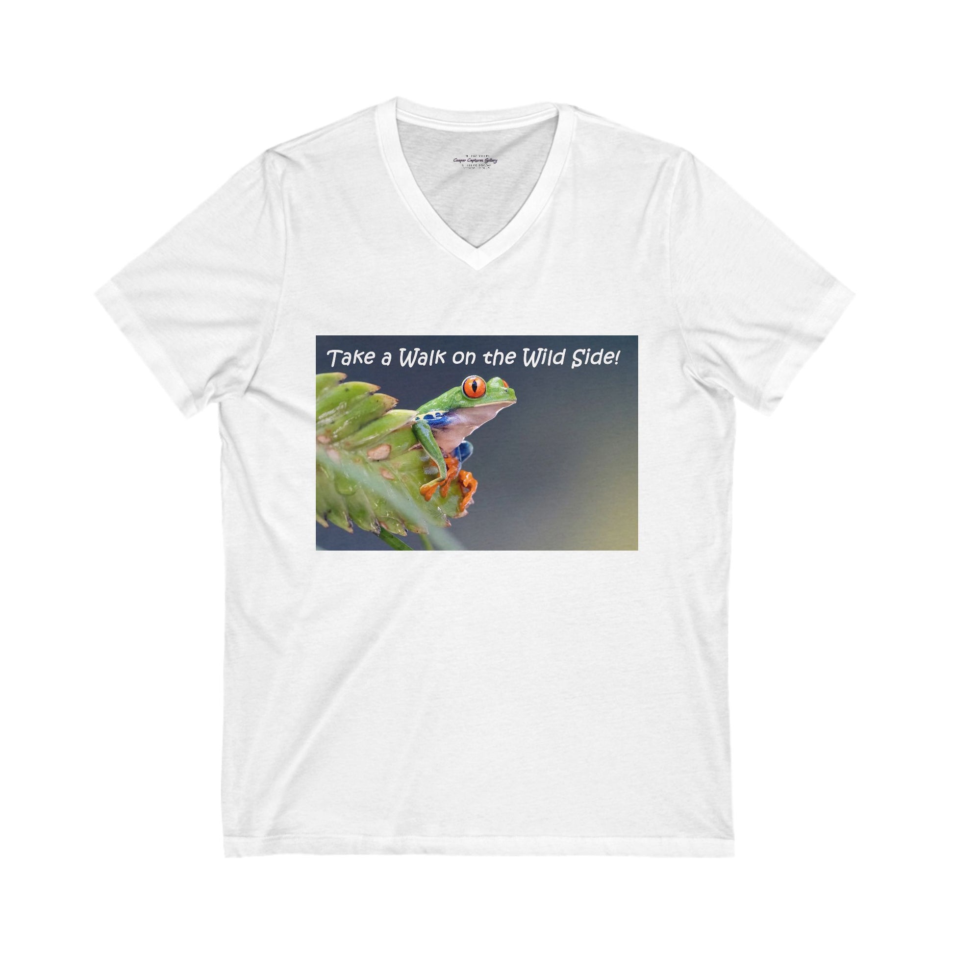 Costa Rican Red-Eyed Tree Frog on a leaf - V-Neck Tee-Shirt